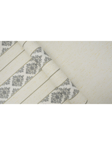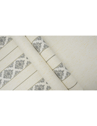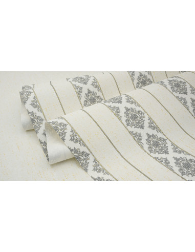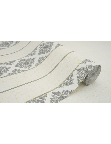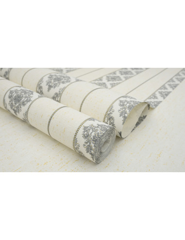 Ajoutez une touche de sophistication classique à votre intérieur avec ce papier peint à rayures baroques en gris et doré. Alternant entre des motifs floraux complexes et des rayures élégantes, ce design offre une combinaison parfaite de structure et de luxe. Sur un fond clair subtilement texturé, les accents dorés apportent une touche lumineuse et raffinée. Avec ses dimensions de 106 cm de largeur et 10,05 m de longueur, ce papier peint convient idéalement aux salons, salles à manger et chambres, créant une atmosphère chic et harmonieuse.