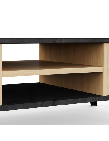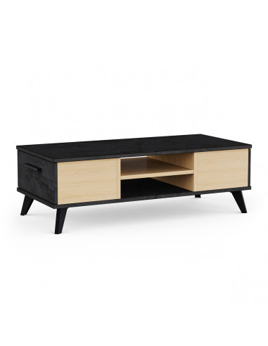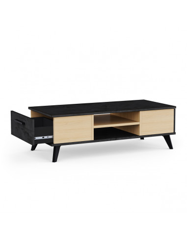 Équipée de 2 tiroirs avec coulisses à billes, la table basse Kent assure une ouverture fluide et silencieuse, idéale pour ranger télécommandes, magazines ou accessoires du quotidien.