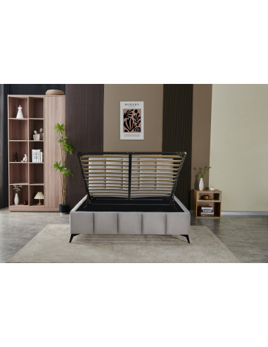Lit avec Sommier et Coffre de Rangement : Ce lit est équipé d'un sommier intégré et d'un coffre de rangement pratique sous le matelas, offrant un espace supplémentaire pour ranger vos draps, couvertures et autres articles de literie.