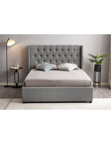 • Design Élégant : Ce lit est revêtu d'un tissu gris de haute qualité et est capitonné pour une touche d'élégance supplémentaire dans votre chambre.
