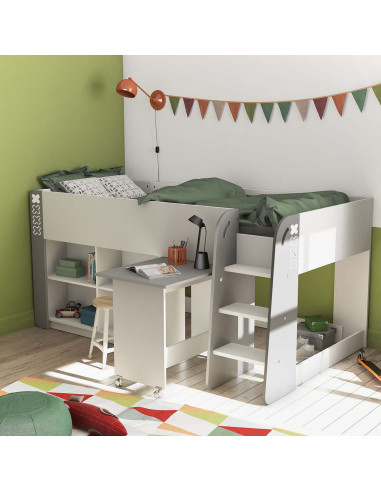 Le lit combiné HAMPTON allie design contemporain, fonctionnalité et sécurité pour offrir un espace de repos complet et élégant. Conçu pour un couchage 90 × 200 cm, il garantit un confort optimal tout en optimisant chaque mètre carré de la chambre.